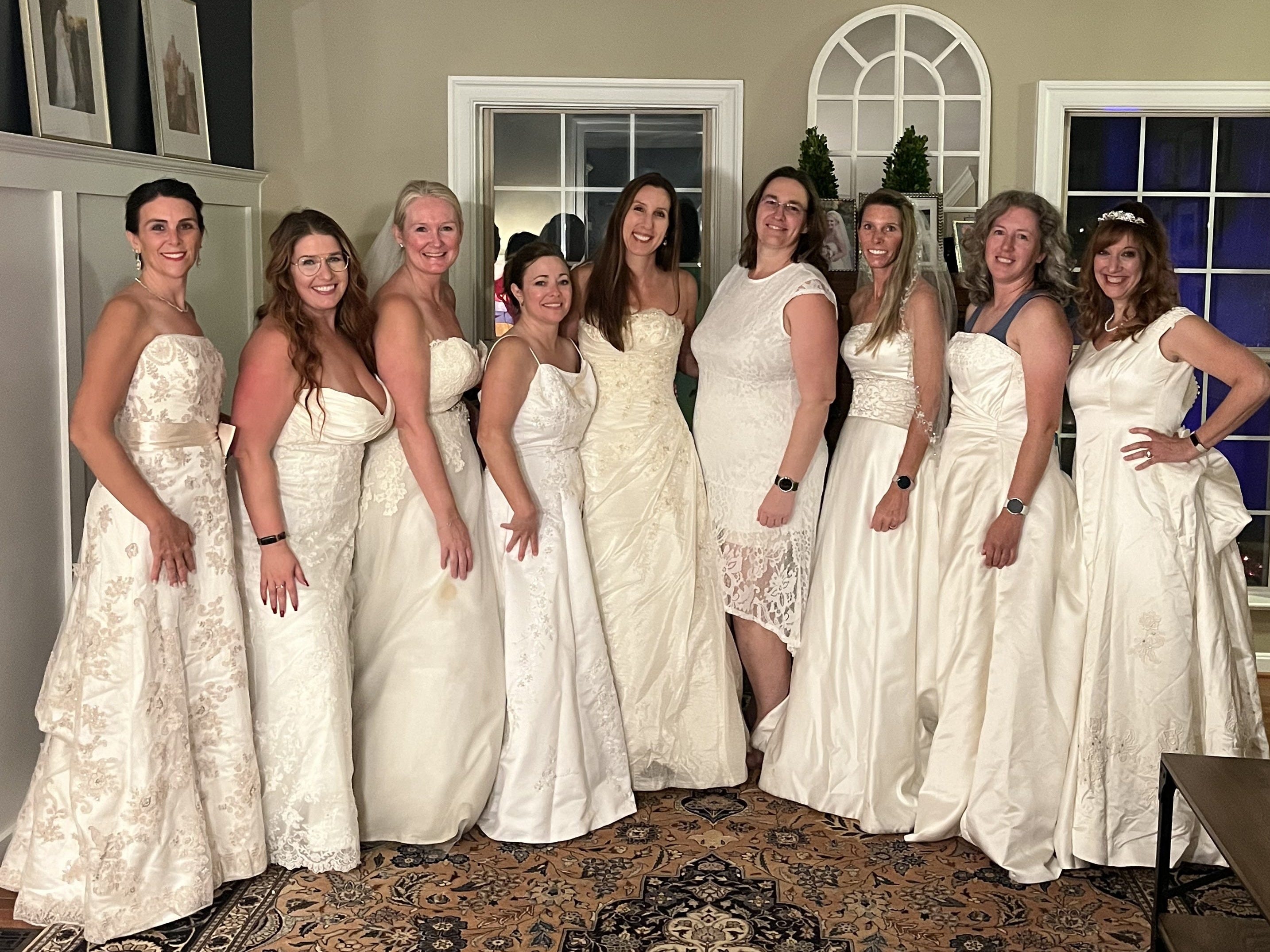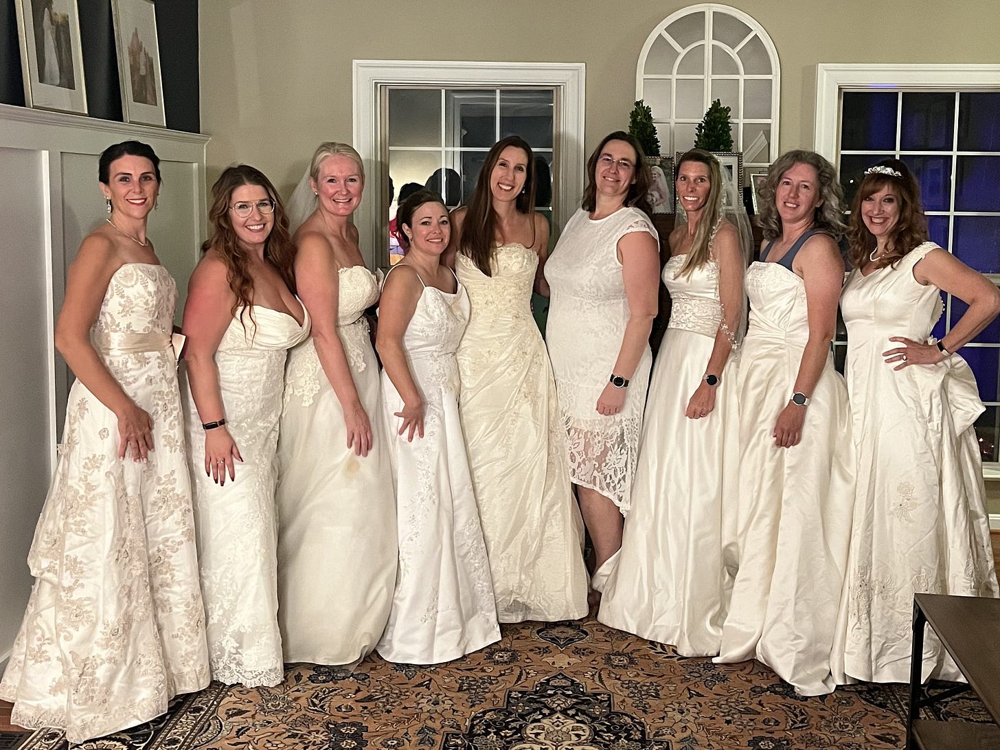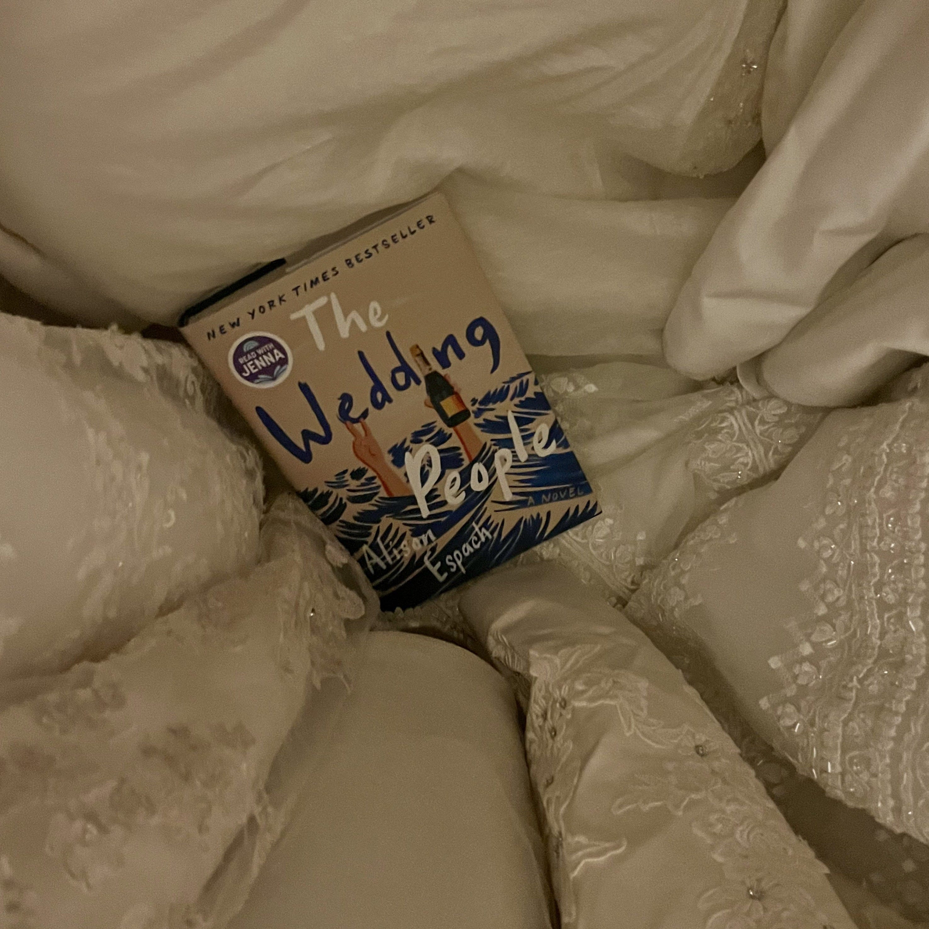 A few months ago, one of my friends sent a video to our book club group text that showed a bunch of women wearing their old wedding dresses to discuss The Wedding People. It was decided that our book club would do the same.